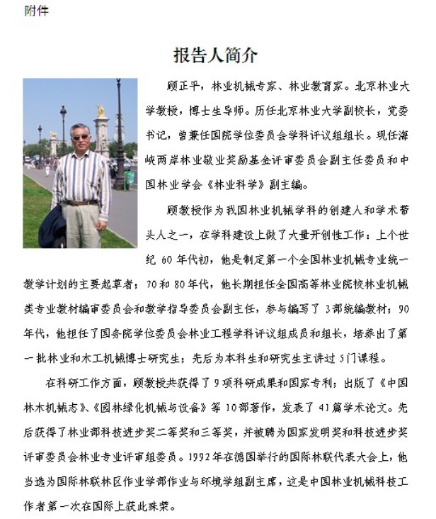 二、讲座摘要: 报告人将根据自身的大学教学、科研和管理经历,结合担任教学督导和教学基本功比赛评委的实际情况,分析大学教师的职业特性、素质要求和课堂教学在教书育人中的重要作用,提出如何激励学生学习兴趣、注重学生实际能力的培养、试验讲座式课堂教学、探索适应不同课程特点的教学方法等提高教学效果的措施与建议。三、讲座人:林业教育家 顾正平教授