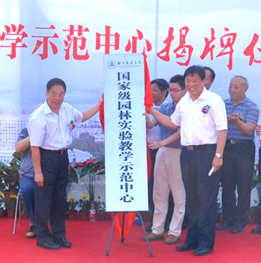 5月20日,国家级园林实验教学示范中心揭牌仪式在我校八家苗圃举行,校党委书记吴斌、校长宋维明共同为示范中心揭牌。中国工程院院士孟兆祯、校党委副书记全海、副校长骆有庆、副校长王自力出席了仪式。
