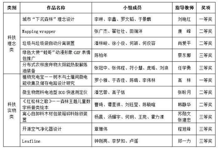 经现场答辩、专家评审,共评选出科技理念类作品校级一等奖1项、二等奖2项、三等奖2项;科技实物类作品校级一等奖1项、二等奖2项、三等奖3项。学校将从获奖作品中遴选优秀作品参加今年9月的全国大赛。现将获奖名单予以公布。