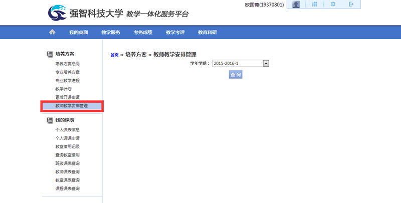 点击左侧“教师教学安排管理”,进入教学日历填写。