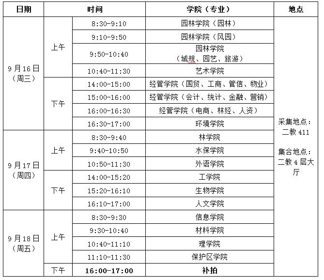 (4)若因故未能按照所在学院时间采集的学生,请根据安排拍摄时间前去采集拍摄。将不安排其他时间补拍。