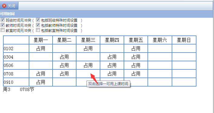 点击“可用时间”可选择具体补课时间,如下图所示: