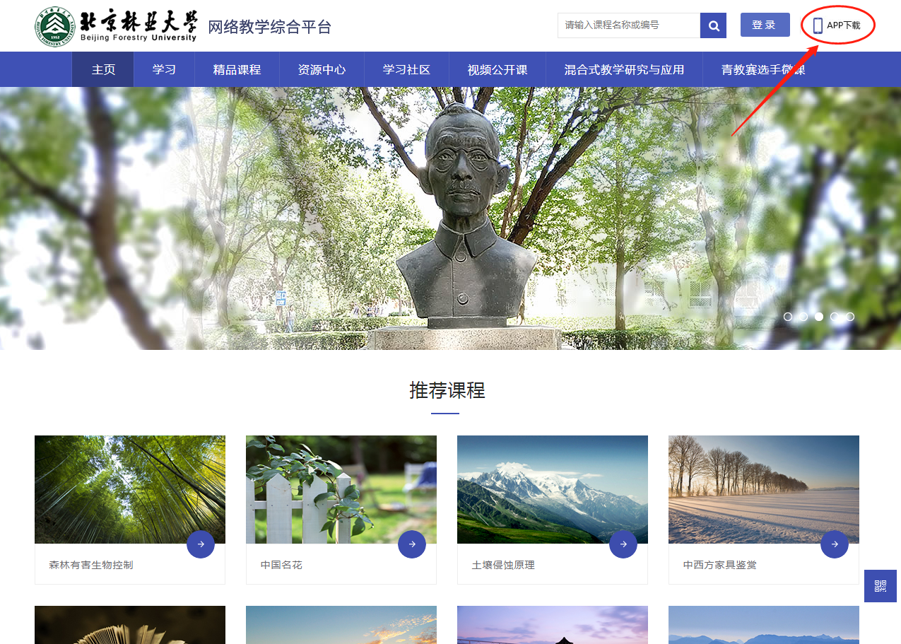 访问教学平台主页,点击页面右上方“APP下载按钮”