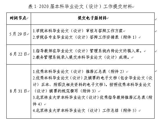 附件1:北京林业大学本科各专业毕业论文(设计)答辩工作安排表